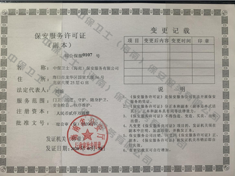开云官方站网页版登录入口-开云(中国)是经海南省公安厅批准,依法持有《保安服务许可证》,提供保安服务、门卫、巡逻、守护、区域秩序维护、随身护卫、安全检查的专业化保安服务公司。